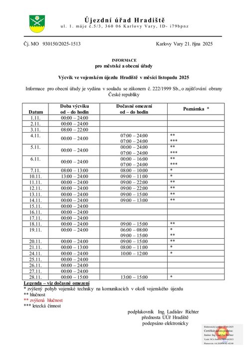 Úvod > Obec > Aktuality > Výcvik ve vojenském újezdu Hradiště v měsíci listopadu 2025